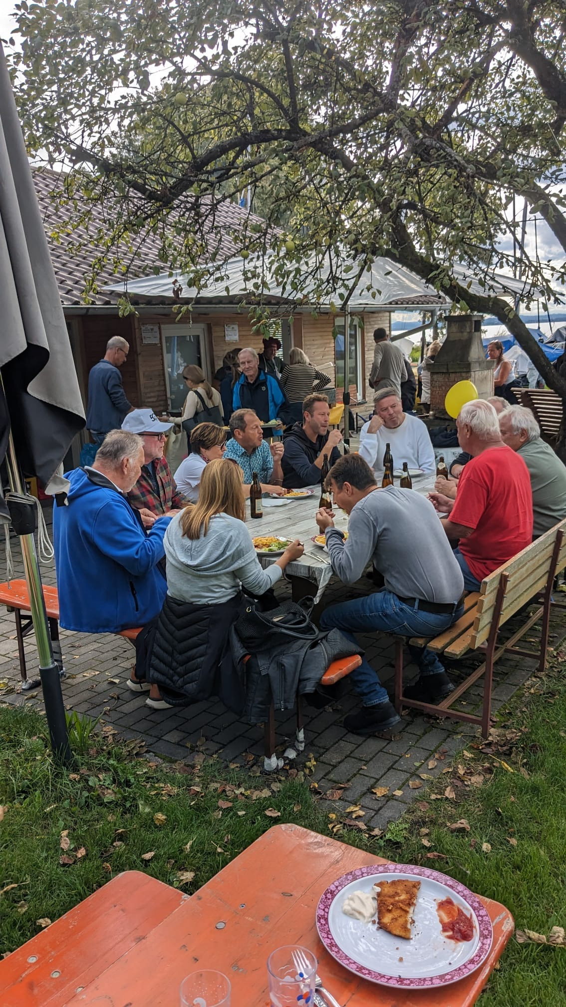 um 14 Uhr geht es von vor Schloß Montfort zurück zum Platz wo schon leckeres Essen wartet und alle Segler und Gäste.